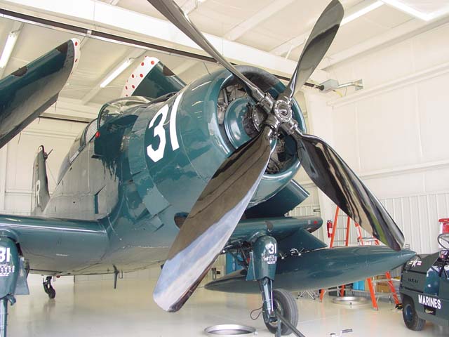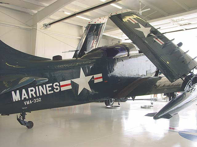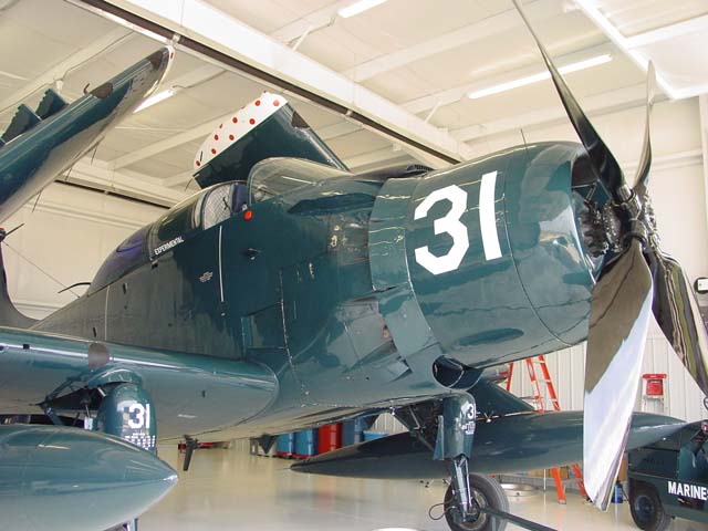 This Skyraider is fully operational and flew into the Creve Coeur Air Port (suburban St. Louis) about 10 days ago. It takes up two thirds of a hanger--even with the wings up. You will note the twin 150 gallon wing tanks, but there were also two 300 gallon tanks stored on the floor of another hanger. The owner is going through a mountain of red tape to make it legal as a trainer/warbird. The interior doesn't look anything like a typical bubbletop A1H Skyraider. It will appear in 6-7 airshows this summer and fall, but the owner wasn't ready to announce just where, till all of the paperwork is done. It is unclear if he will fly at the airshows...or just be part of a static display. Sorry I missed his arrival to the airport. The noise must have been like music to Skyraider fans. I had no idea Skyraiders were that huge. I can assure you this Skyraider is in flawless condition.