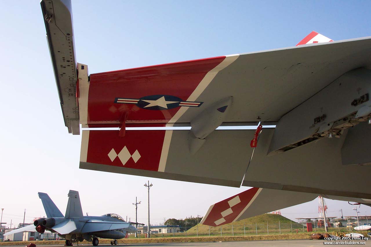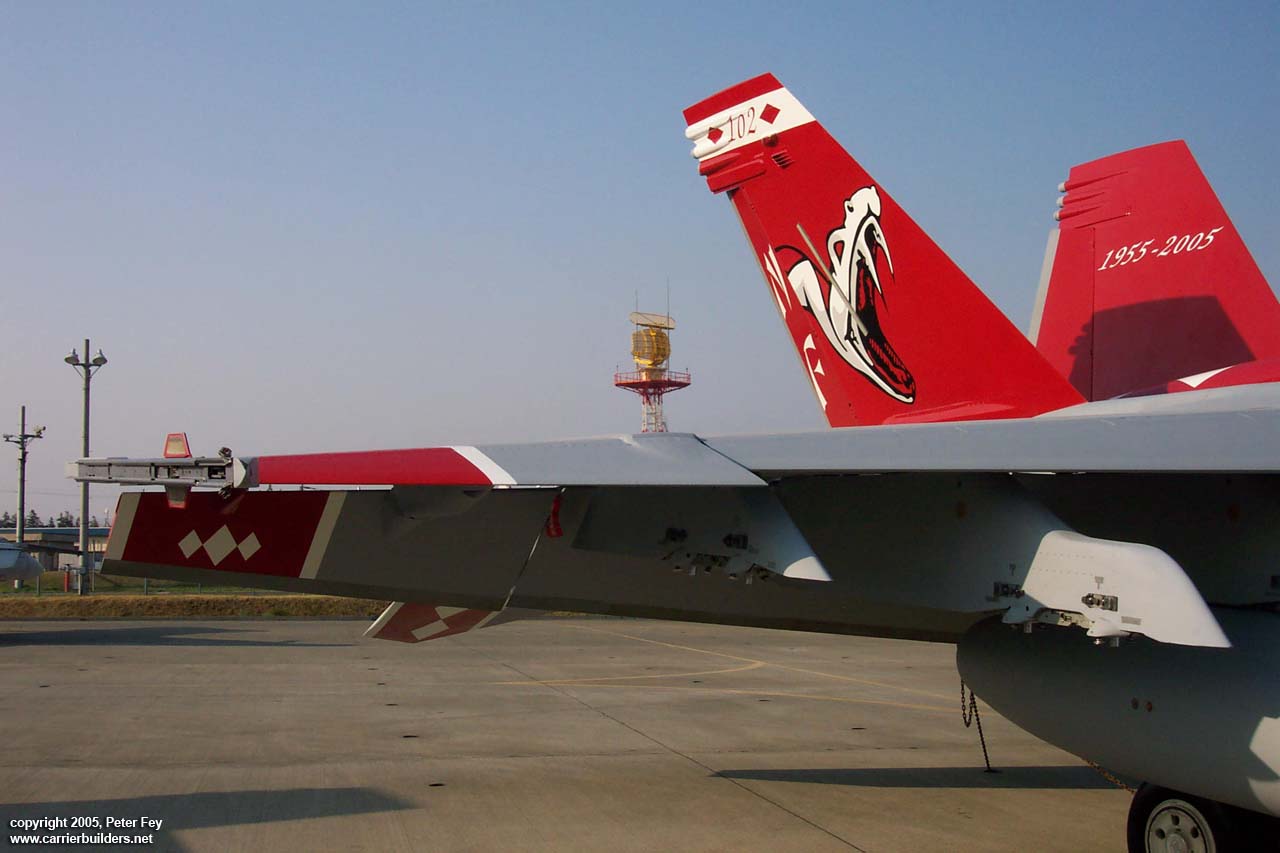 A few shots of the VFA-102 new 50th anniversary paint scheme. Atsugi, Japan 1280 pixel wide images! Photos and text © 2005 by Peter Fey April 19, 2005 www.carrierbuilders.net |
