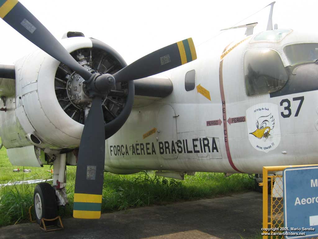 This is the Brazilian Air Force S-2E (locally designed P-16E) Tracker. These tracker were operated by Brazilian Air Force on the Navy carrier A-11 "Minas Gerais". These pics were taken at the Aerospace Museum of the Brazilian Air Force in Rio de Janeiro, in October 2004. 1024 pixel wide images! Photos © 2005 by Mario Serelle June 12, 2005 |