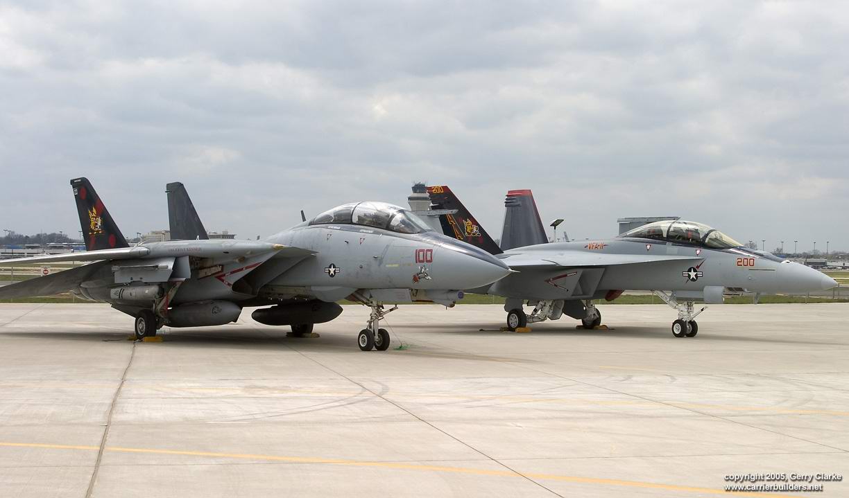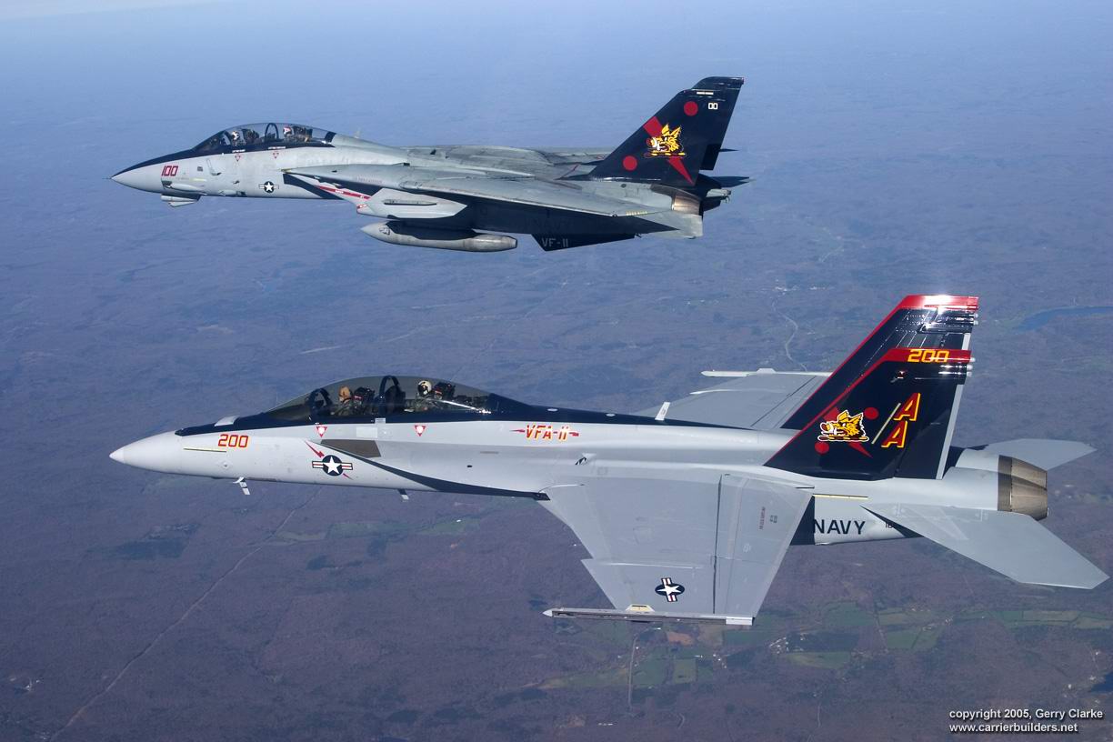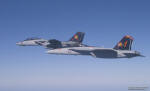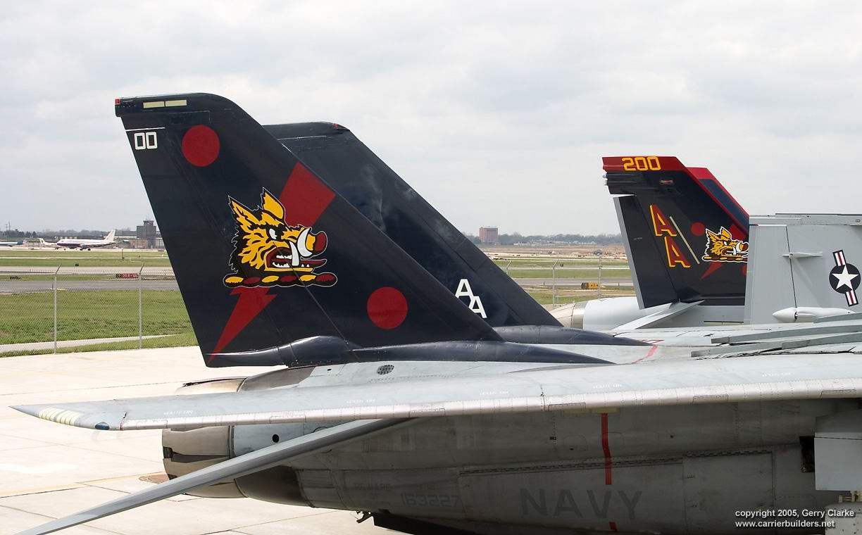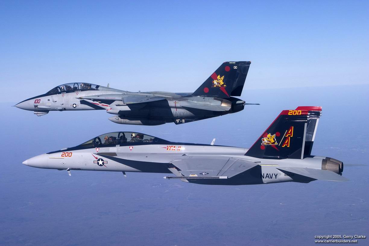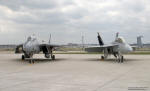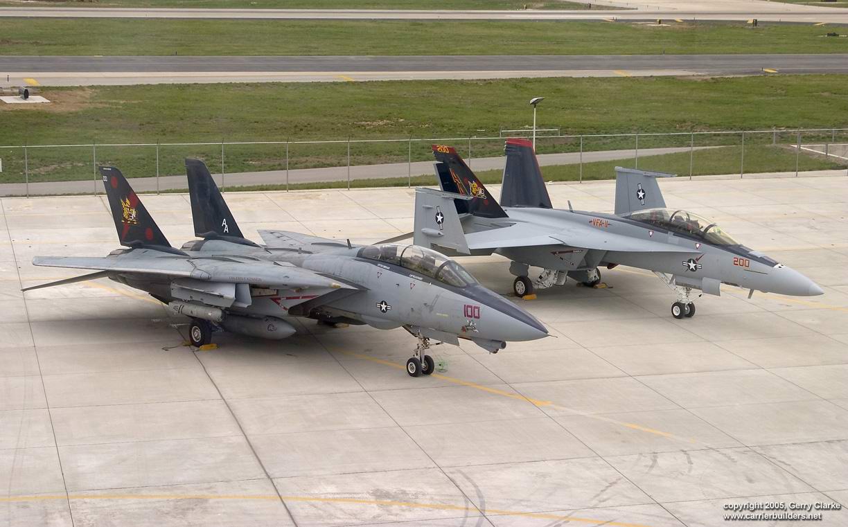 These shots are representing the transition of the the VF-11 Tomcats to VFA-11 Super Hornets. Rare event when both planes are near each other, and good photographs are taken. 1280 pixel wide images! Photos © 2005 by Gerry Clarke June 22, 2005 |