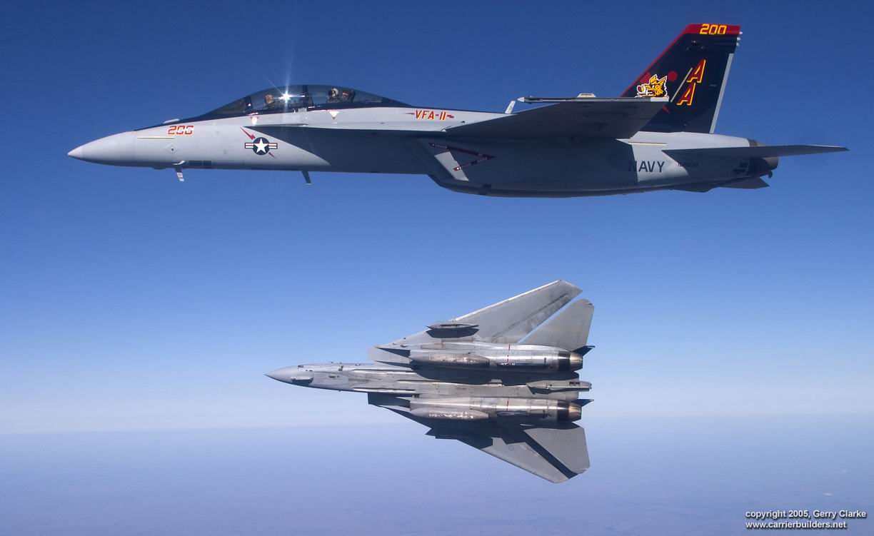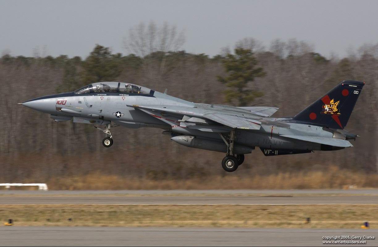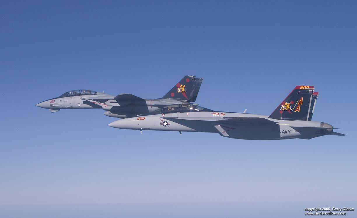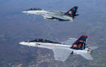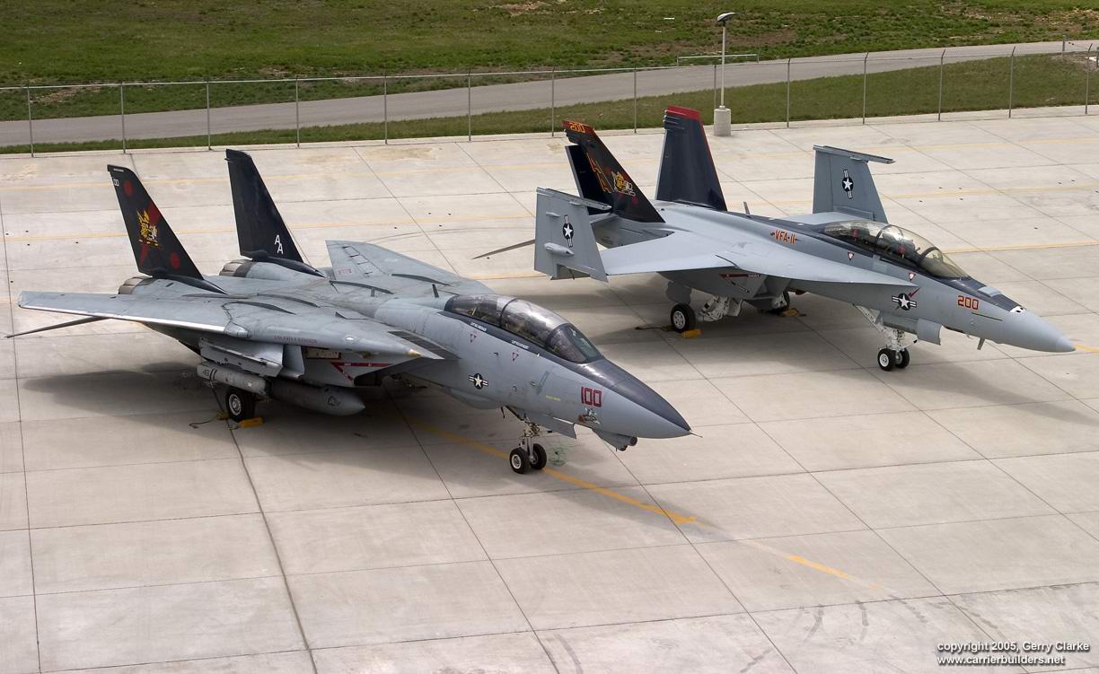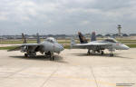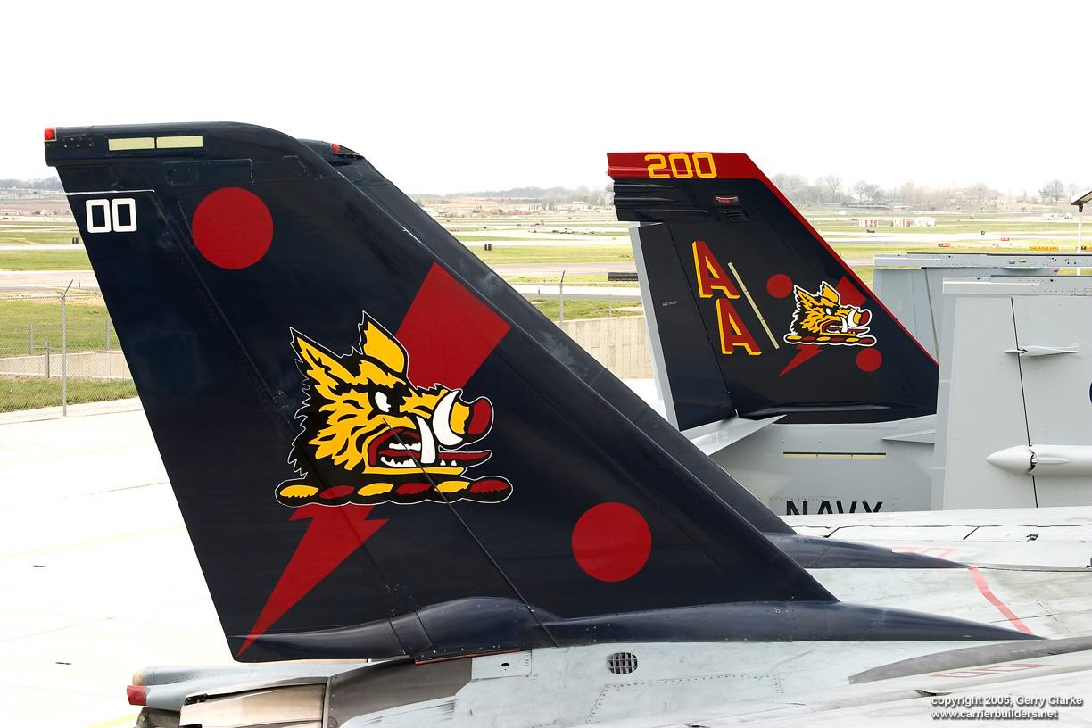 These shots are representing the transition of the the VF-11 Tomcats to VFA-11 Super Hornets. Rare event when both planes are near each other, and good photographs are taken. 1280 pixel wide images! Photos © 2005 by Gerry Clarke June 22, 2005 |