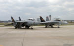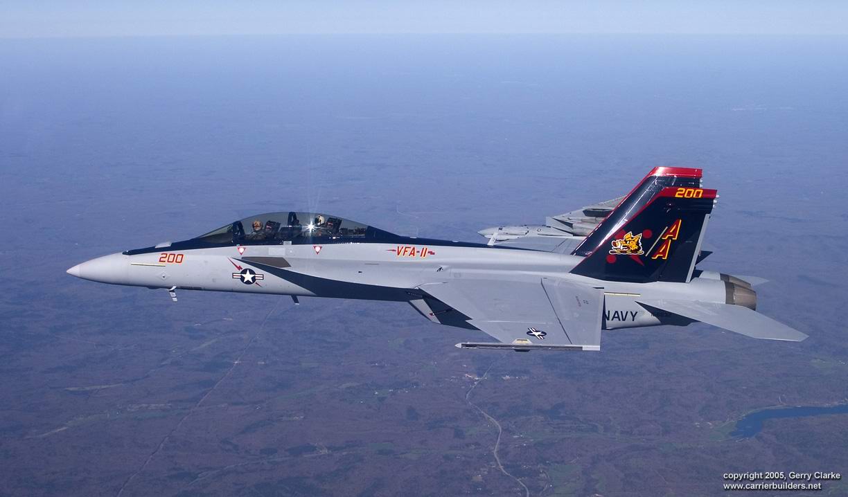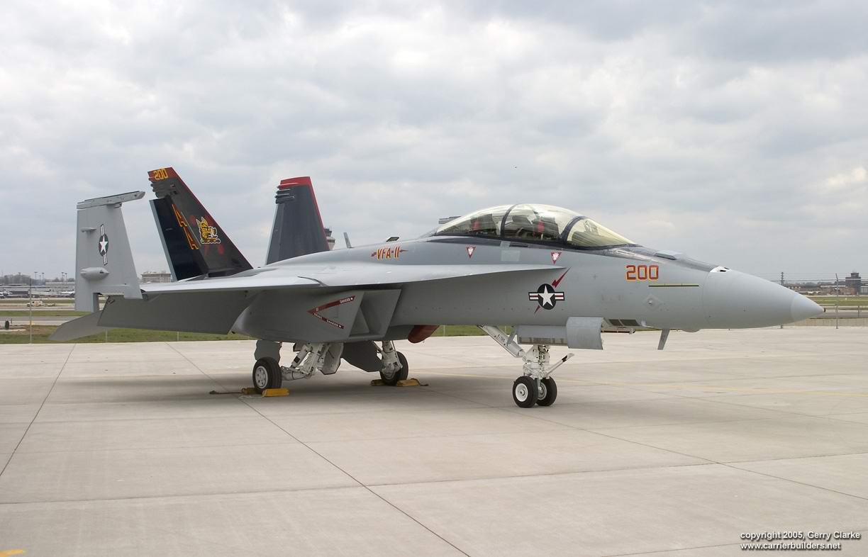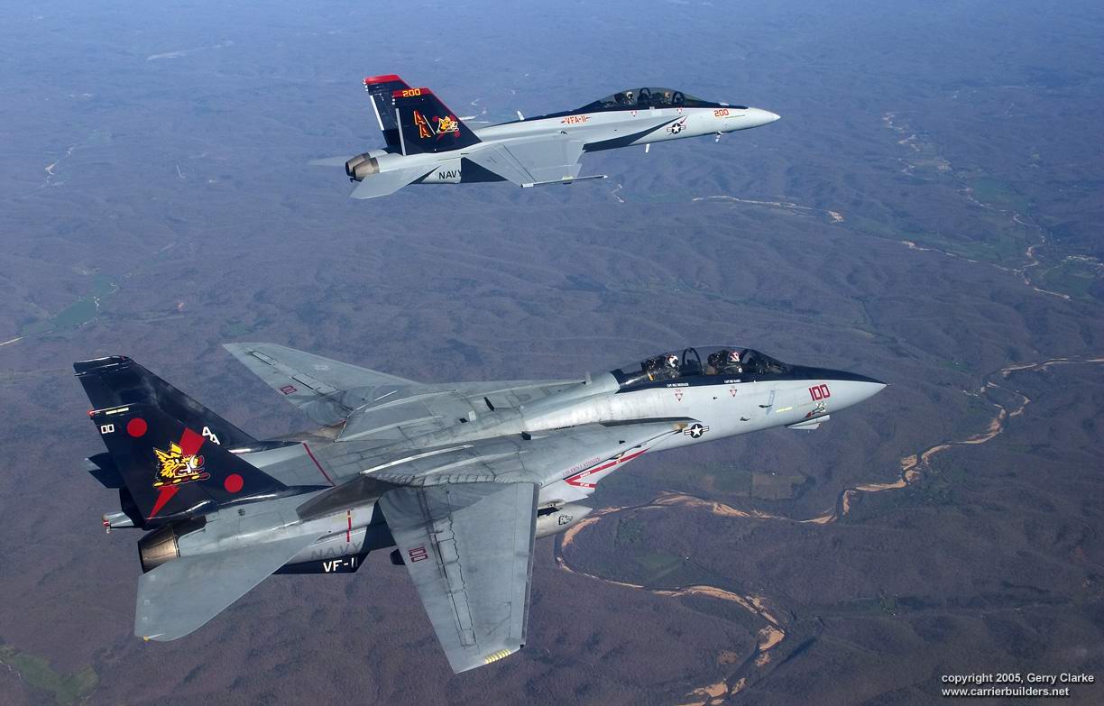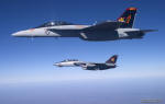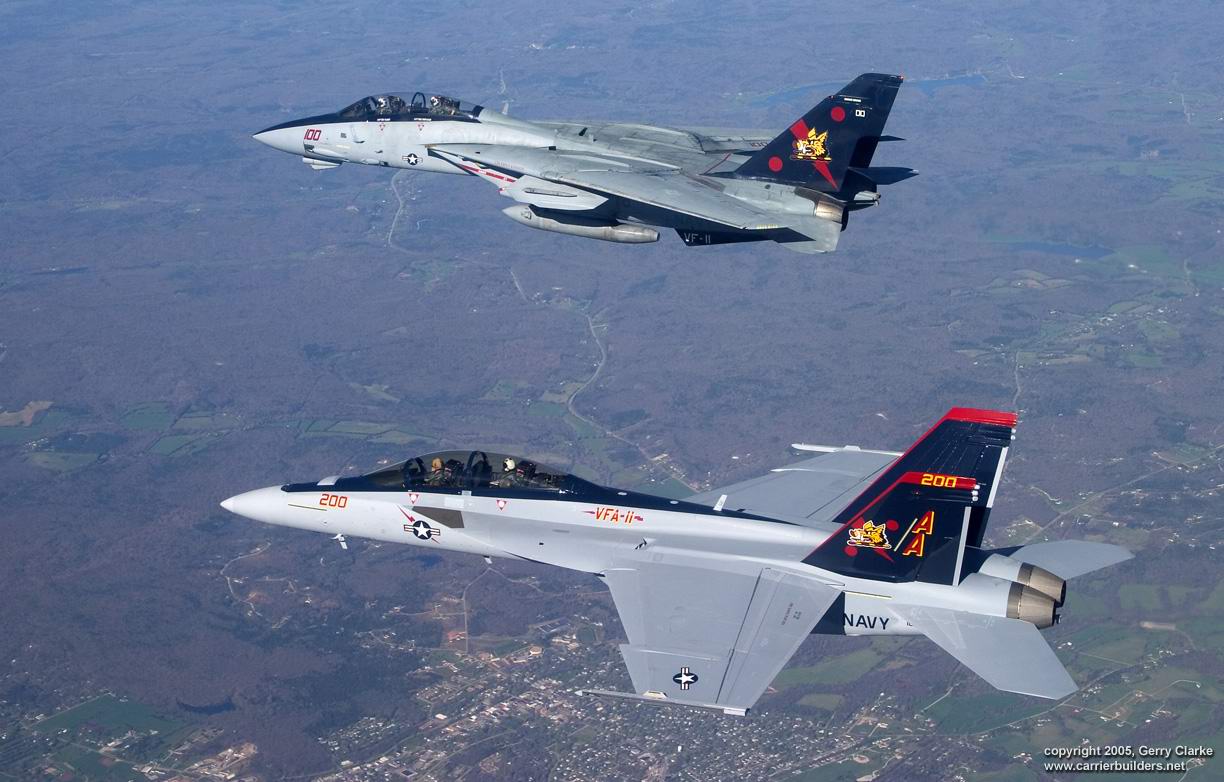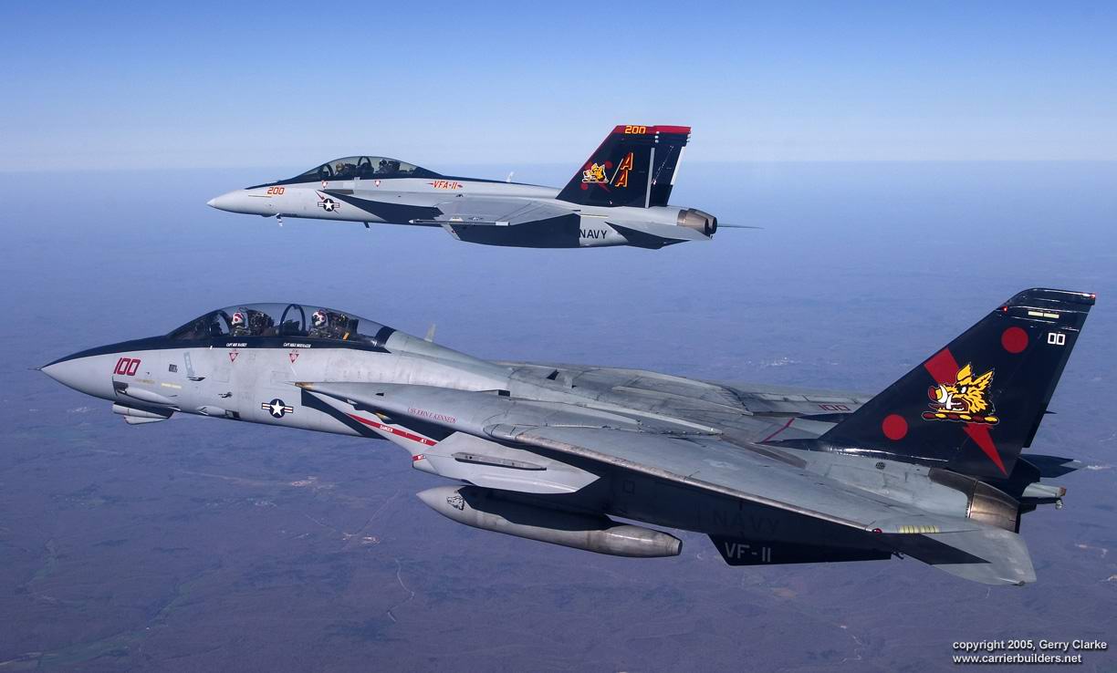 These shots are representing the transition of the the VF-11 Tomcats to VFA-11 Super Hornets. Rare event when both planes are near each other, and good photographs are taken. 1280 pixel wide images! Photos © 2005 by Gerry Clarke June 22, 2005 |