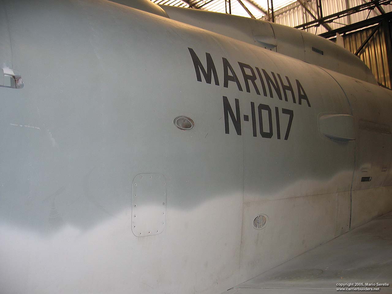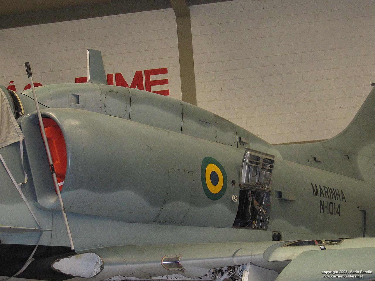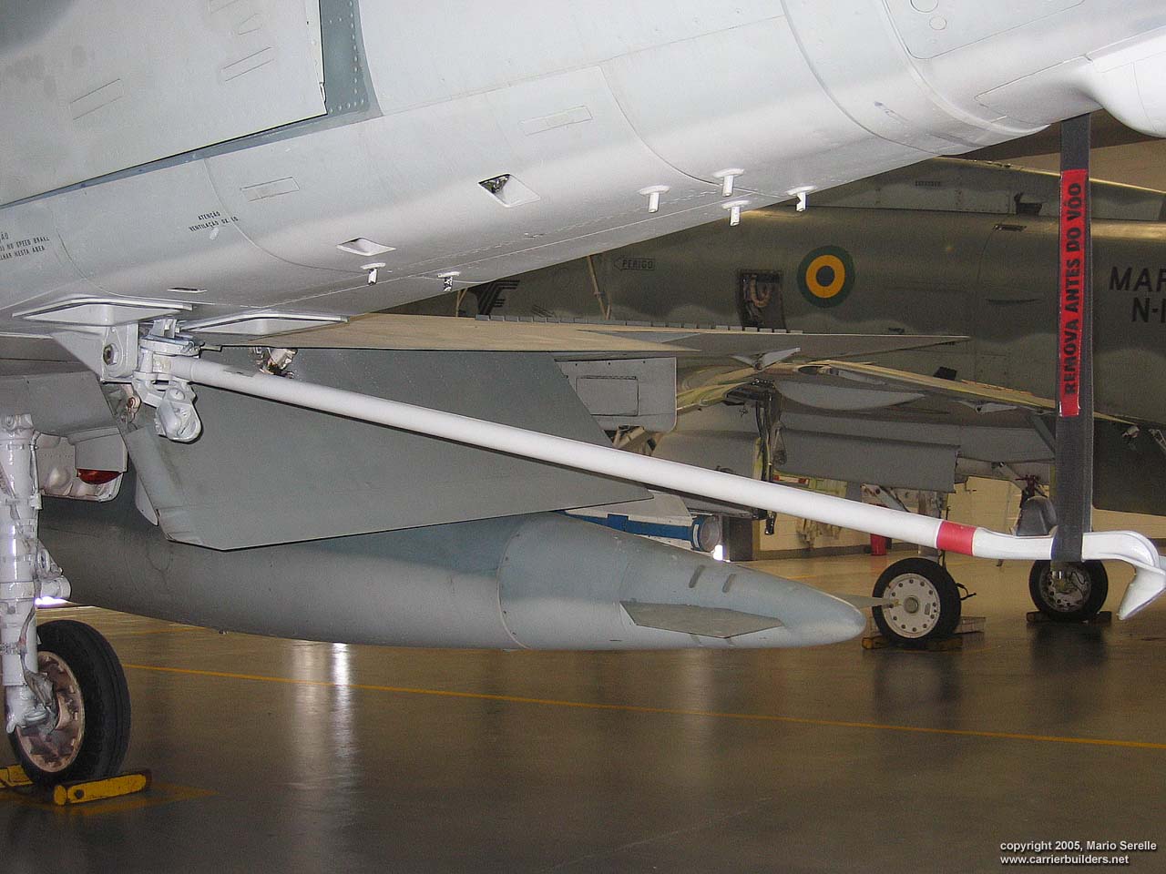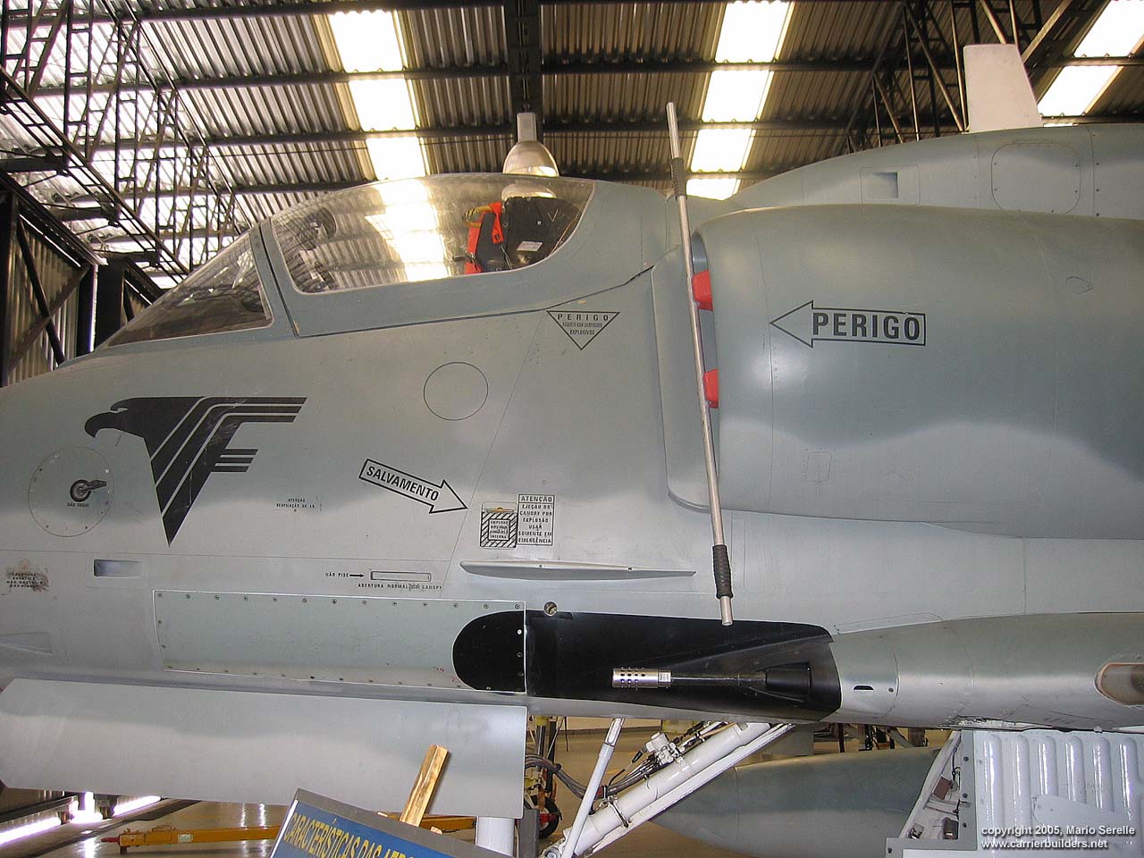 With United States cooperation, in 1997 Brazil negotiated a $70 million contract for purchase of twenty A-4KU and three TA-4KUs from Kuwait. These are operating from A-12 "São Paulo", former French Navy R99 "Foch". It was purchased from France in 1999. The Kuwaiti Skyhawks were re-designated AF-1 and AF-1A. 1280 pixel wide images! Photos © 2005 by Mario Serelle June 27, 2005 |