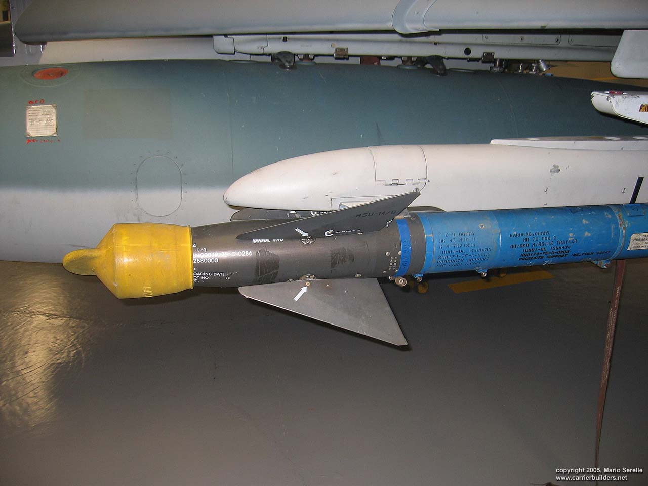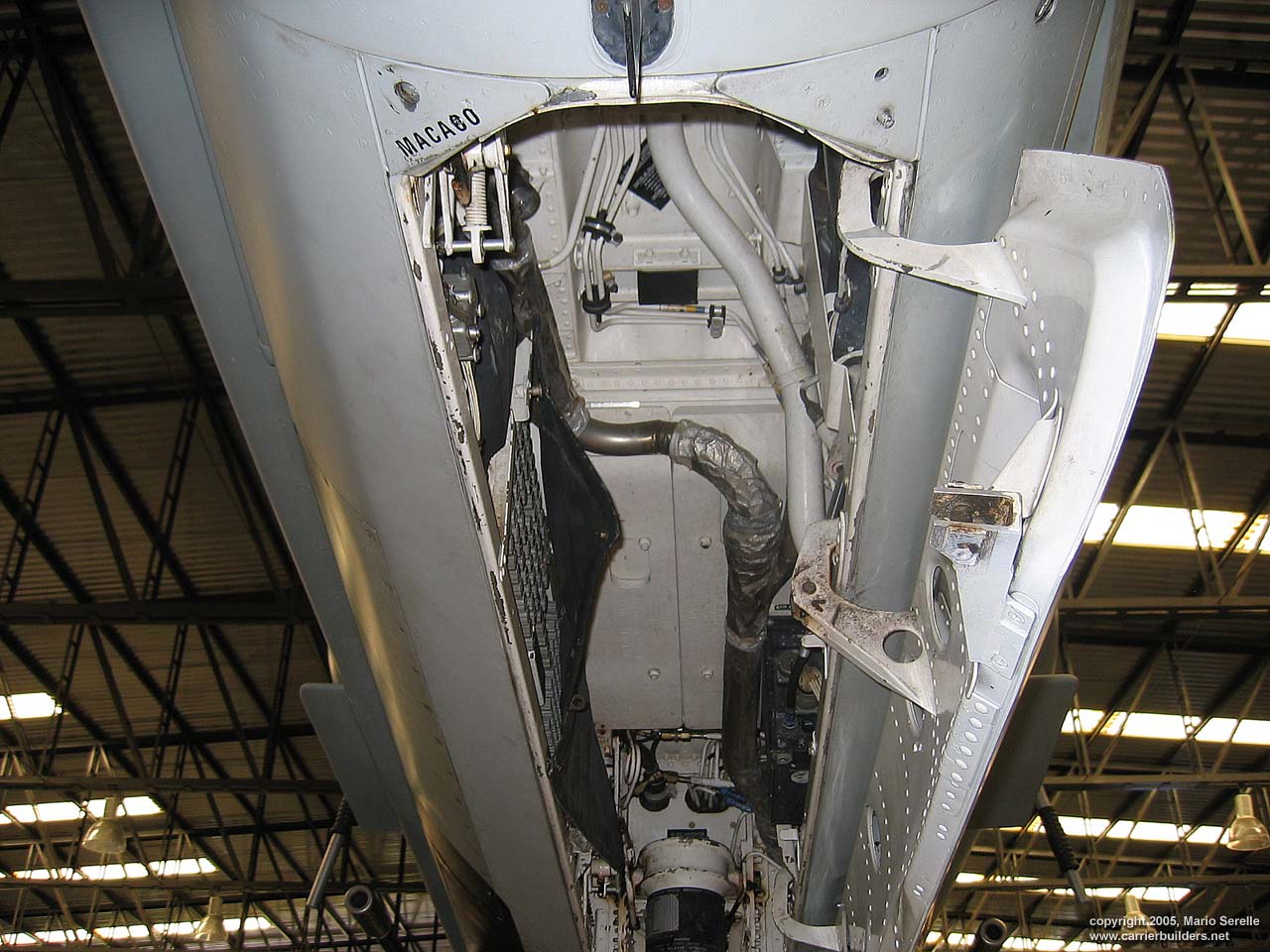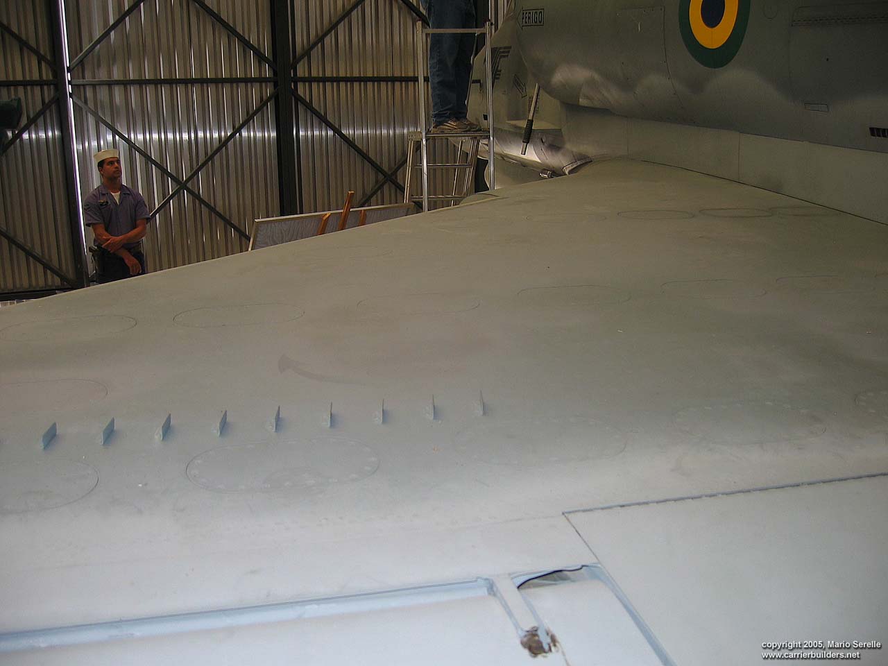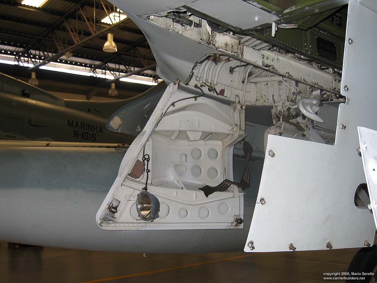 With United States cooperation, in 1997 Brazil negotiated a $70 million contract for purchase of twenty A-4KU and three TA-4KUs from Kuwait. These are operating from A-12 "São Paulo", former French Navy R99 "Foch". It was purchased from France in 1999. The Kuwaiti Skyhawks were re-designated AF-1 and AF-1A. 1280 pixel wide images! Photos © 2005 by Mario Serelle June 27, 2005 |