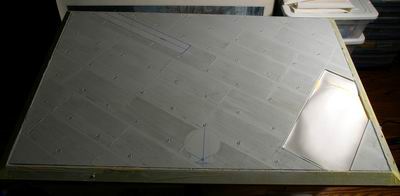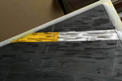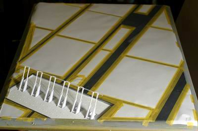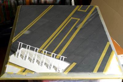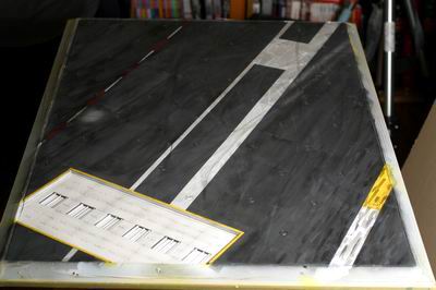 wash. This photo shows masking for the white lines after the gray sprayed. |