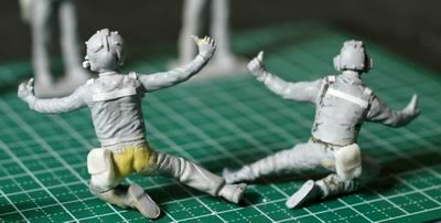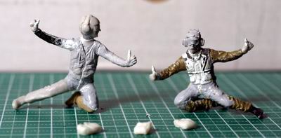 Building Figures. In this diorama, I used 10 figures including 2 pilots. Those are 5 PWMP, 4 Tamiya and 1 Academy. Build the Signal men first, I think these 2 are not so popular though. Their role is to confirm the safety and signal to the Shooter. |