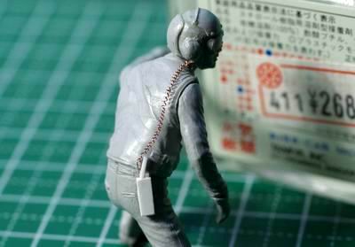I used a shooter from Academy F/A-18C kit. I stretched the left arm straight with heating by candle. Also I added a scratch built radio. |