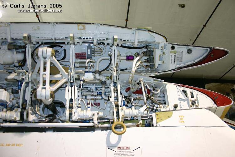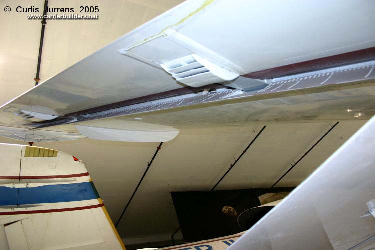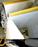 Grumman A-6F Intruder (prototype) BuNo 162184. This was an updated version of the A-6E/TRAM, with a new, strengthened wing structure, additional wing pylons, digital electronics, new radar, and more powerful engines. It is one of three prototypes built before the program was cancelled. It is positioned against a wall, making photos of most of the left side basically impossible. Photos © 2005 by Curtis Jurrens August 16, 2005 |