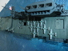 The Lexington is from Trumpeter. Like their Saratoga model it is well detailed and a pleasure to build. GMM again provided the fine detail and Artwox the wooden deck. I didn't replace the guns this time as the kit mouldings seemed better on this model. Also I didn't bother with arrestor wires as after fitting one I found the dark blue deck rendered them invisible. The USS Minneapolis is also Trumpeter. Like the carrier a very nice kit to build. Detailing is a mixture of GMM's cruiser/destroyer fret and WEM's New Orleans cruiser fret. The deck is a precut Artwox deck which was quite tricky to fit around all the moulded detail. USS Phelps is the 1942 version of USS Porter produced in resin by Combrig. If you have never tried one of their kits I can heartily recommend them. For resin castings the detail is amazing. They did provide a sheet of PE which I augmented with GMM. Rigging was a mixture of sprue and copper wire and crew figures were by Eduard. Painting was nearly all Lifecolor acrylics either brushed or sprayed over a primer coat of Alclad grey primer. Weathering on all three ships involved stippling a light grey wash followed by dry brushing in the highlights. The sea, as with Saratoga, was Faller lake sheet painted with a mix of household emulsion and artist's acrylics. Ironically one of the colours was Pacific Blue!