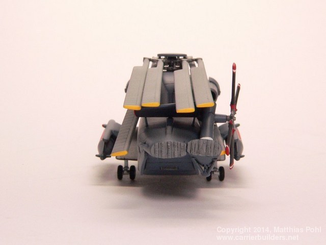 For coloring the Sea Stallion I used Valejo acryl colors, a little pre-shading, washing and highlighting afterwards. The details of the folded rear rotor are scratch built. The decals were mostly self-printed, the photo-etched folding parts of the rotor are made by Brengun and should normally be used for a SH-60. The little fire truck is made by Brengun too. The “mule” is made by Dragon, the trolley is a white metal one by Century Wings. During the DPMV exhibition (Germany’s plastic modelling section) on may the 17/18th this model won the gold medal in the category “aircrafts 1/72 and smaller”. As I always say: “Go 1/144 – beat 1/72!”