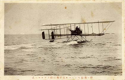 In March of 1909, the same year that Victor Lougheed wrote his prescient paragraph on the development of aircraft-carrying ships, and Louis Blériot flew over the English Channel [see the first article in this series] Lt.Cdr. Yamamoto Eisuke of the General Staff (3) wrote a “Statement Concerning the Study of Aeronautics” in which he claimed that future naval warfare would take place in three dimensions. Bitter rivalry with the Army, and the support of an air-minded Navy Minister (Saito Makoku) led to a separate “Committee for the Study of Naval Aeronautics” being formed by 1910. This committee then sent young officers to the United States, France, and Germany where a number of them learned to fly and purchases were made of a Glenn Curtiss and a Maurice Farman seaplane. (4) A rough base was established at Oppama and from here these two aircraft were assembled, tested, and then flown on Nov.12 before the Emperor. (5) In 1913 that naval transport Wakamiya Maru was fitted out with derricks and hangars to hold two assembled and two disassembled seaplanes. That fall she participated in Combined Fleet exercises and her seaplanes found the ‘enemy forces’ without exposing her own position. Trials early in 1914 confirmed this ability to project a presence beyond visible range.(6) Shortly after WWI began, the Wakayama Maru (7) with four Maurice Farman seaplanes on board participated in the siege of the German base at Tsingtao, China. (picture 2) Reconnaissance was the main mission although six to ten artillery shells were carried on most flights and dropped over the side of the aircraft. Despite a top speed of only 50kts(85kph) and a ceiling of only 1500 ft.(450m), none were shot down by German ground forces and, in turn, the ‘bombing’ did little damage. (picture 3) When the Wakamiya hit a mine on Sept.30, 1914, her aircraft were landed and operated for a week from a strip of beach held by Japanese forces. (picture 4) Eight days later the ship was repaired and serviceable and recovered her aircraft. Soon after, the base surrendered and by the end of November all German possessions in the Far East had been seized and the Japanese would gain no further combat experience.(8) World War 1 brought rapid development of aircraft – their performance, their roles, and their further potential – and the Japanese missed most of this. They had many observers in the European war zones (including one on HMS Furious in 1918) but that only confirmed how much ground had to be made up. All aircraft and pilot training had to be purchased or accomplished overseas, so obviously an aircraft industry and flight training facilities would have to be created where none had been before. And for the Japanese Navy there was a special problem called the Japanese Army. Neither the Army nor the Navy would ever allow the creation of a separate military service as had happened in Britain with the creation of the Royal Air Force (April 1, 1918) which meant their rivalry could continue unabated and it was in every way as bitter as the rivalry between the US Army and USN in the days of Billy Mitchell. The aircraft that the Japanese Army would set specifications for were intended for a land war where Russia would be the expected enemy but by the late 1920’s the Japanese Navy saw the United States, and perhaps Great Britain, as the potential foe, and so they set requirements for aircraft quite differently from the Army. Army and Navy plane factories were separate from one another and kept secrets from each other. Not even screws and rivets were standard between the two services, never mind electrical systems and radios. (9) The Japanese Army in 1919 invited a French technical mission led by Col. Jaques-Paul Faure to come to Japan: twenty Armée de l’Air officers and thirty other technicians, along with numerous aircraft, arrived. The army had stolen a step on the Navy! Despite visits to the French mission by naval officers (picture 5 shows Admiral Togo Heihachiro, the great victor of Tsushima, and Navy and Army officers in front of a French aircraft), this was not enough, the navy would need its own foreign mission.