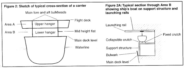 I wonder if there is a modeler in the world, particularly one involved in scratchbuilding, who has gone through an entire build without making a serious mistake? If there is, that is a person to be admired. It certainly isn’t me. I mentioned in Part 1 how I attempted to design the hull to be detachable at the waterline but failed and then decided to make the entire flight deck (1.98m or 58½”) removable. In the main picture above the hull, not separable at the waterline, is seen upside down upon a 60/1000” styrene flight deck. One of the consequences of planning, then abandoning, the idea of separation at the waterline was to make completion of the hull more complicated than it needed to be. This sad result derives from the fact that the Bonaventure was originally a British carrier (ex-HMS Powerful) and followed the same design pattern as all British carriers from the original HMS Argus of 1918 through to all the carriers designed and built up to the cancelled ‘Malta’ class of 1944. As seen in picture 1 below, the hangar deck (or decks) was an armoured box sealed from the rest of the ship. Around the box that was the hangar: its floor was the main deck and it projected outwards from the hangar box to meet the hull leaving room for passageways. There were many ‘cut-outs’ in the hull but none penetrated the hangar bulwarks. So intent were the British on a secure hangar that it was not until the 1950’s that a deck-edge lift was incorporated into modifications made in British carriers. Had I planned from the start to create the entire hangar deck as the single large box that the ship actually had, my construction time would have been shortened considerably. As it was, I ended up with two elevator/hangar ‘boxes’ as seen in picture 2. The outside surfaces of the hangar box should have been the bulwarks visible when looking through the hull cut-outs – but that is not what happened. Picture 3 shows the ‘hangars’ I made. These would later be permanently glued to the underside of the flight deck (for reasons to be described in Part 3). The numerous cut-outs at the main deck level can be seen easily in picture 3. Picture 4 shows the bow area with the flight deck in place and picture 5 shows the bilge keels in place and work proceeding around the propeller shafts. The emergence of the shafts from the hull required quite a bit of sculpting. A brass tube was wrapped in different pieces and thicknesses of basswood, carved, shaped, filled, sanded, then eventually varnished and painted as was the rest of the wooden portion of the hull. The results are seen in pictures 6 and 7. Pictures 8 and 9 demonstrate how slim the hull below the waterline was: the fineness ratio was above 8. Nevertheless, these were not fast vessels. Bonaventure is said to have made 24 knots on her trials but her crew often joked that she was the only ship in the navy whose pennant number (22) was also her maximum speed. Picture 10, the final one in this section, shows the stern of the ship with the rudder in place and the heavy application of filler to attempt to make the hull smooth.