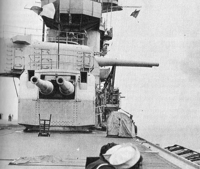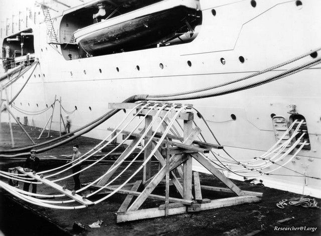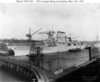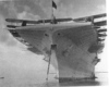Each of the battle cruisers ordered in 1916 was expected to cost $16.5 million but their late start (laid down 1920-21), change in armament, and the addition of 8,000 tons to the design, undoubtedly would have increased the cost.(15) The conversions to carriers were expected to take three years and cost about $23 million – in the event, and typical of programs involving new technology, the ships took five years to complete. Lexington was built at the Bethlehem Shipyard in Quincy, Massachusetts: commissioned Dec. 14, 1927, she cost $46 million to complete. (pictures 11, above; and 12) Her sister, Saratoga, built at the Camden, New Jersey yards of the New York Shipbuilding Company, was commissioned Nov.16, 1927, and cost $44 million to complete.(16)(picture 13) Both ships displaced an ‘illegal’ 41,000 tons.(17) From the very beginning it was foreseen that these ships were likely to spend their service careers in the Pacific – Bremerton, San Diego, and Pearl Harbour, Hawaii, had docks large enough to service these vessels. “Carriers were the first warships for which the weights of the various components were not the prime determinants of ship size and configuration….In the case of carriers, volume became the dominant issue because the essential components of the ship (gasoline, magazine, hangar space….crew quarters….maintenance shops, and event the aircraft themselves) were all relatively light for their volume.”(18) Even so, the new ships found that space was at a premium. Their hangars (picture 14) were small in relation to other, later, carriers, being 424’ (130.5m), only 74’ (22.8m) wide aft and an even tighter 68’ forward, this narrowness being caused by the hull itself whose beam of 104’ (32m) allowed them to pass through the Panama Canal(19) (picture 15); and by the deep insets along the sides of the hull to house the numerous ship’s boats. Nevertheless, it was 2½ decks high giving 21’ (6.5m) of head room and this allowed numerous aircraft to be partly dismantled and held under the flight deck, a process the Americans called ‘tricing’.(20) This hangar was fully enclosed and an integral part of the hull structure, thus the flight deck was the strength deck (as in British carriers): Lexington and Saratoga would be the only American carriers built this way until the arrival of the Midway class in 1945. The great disadvantage of this design is that aircraft couldn’t be re-fueled or aircraft engines warmed up in this unventilated hangar: these activities had to take place on the flight deck.(21) And getting to that flight deck was facilitated by only two small elevators, the one aft being 30’ x 36’ (9.1m x 11m)(picture 16) and the forward elevator 30’ x 60’ (9.1m x 18.2m) with a 20’ x 26’ section of the flight deck directly behind the aft edge of the forward elevator that could open – split on the centerline and two sides hinged upward, to handle aircraft too long for the elevator (picture 17). Given the numbers of aircraft on these ships (nominally 78 but 90 were often carried: for one cruise in 1930 120 aircraft were carried but 45 of them were dismantled and in crates) (22) the two elevators were very inadequate. After Lexington and Saratoga, all American fleet carriers had more than two elevators. (23) The two ships had enclosed ‘hurricane bows’, a feature not used again on American carriers until the arrival of the Forrestal-class super-carriers (picture 18). The forward edge of the flight deck was only 32’ (9.8m) wide (Lexington’s forward flight deck was widened in 1938; Saratoga’s in 1941).(picture 19) The island and smokestack began as two very ‘clean’ structures but as time went on more and more anti-aircraft guns were added. Carriers have much larger ‘sail’ areas than other warships and this affects their performance while underway and at rest. Lexington and Saratoga had a single 38’ (11.7m) rudder, the largest ever installed on a U.S. warship, but nevertheless, given their long lengths and high speeds, they suffered from a very large tactical radius. They each had three 15-ton anchors at the bow (see picture 18) and when commissioned had four others hung under the flight deck at the stern.(24) And, in keeping with their huge size, these ships had the largest guns ever installed on an American aircraft carrier –four twin 8” turrets (picture 20). As well, they had twelve 5” single barrel guns arranged in groups of three in quadrants just below flight deck level. (see picture 9) In theory, they could duel with anything less powerful than a battleship or a battle cruiser, and had the speed to escape a capital ship’s guns. They had an armour belt 530’(160m) long and 9’4” (2.4m)in depth but it was much thinner than originally planned for these ships as battle cruisers since keeping the displacement as close as possible to 36,000 tons was important. (25)