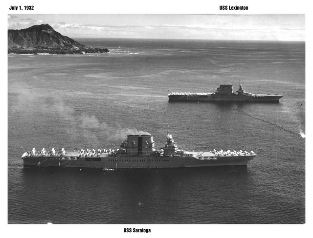 Main Picture: Naval Historical Center (NHC) NH 82117 Last Picture: www. Pingbosun.net (NH 94899) Picture 1: Movie Poster: Hell Diver 1931 Picture 2: www.navsource.org (NS) 020247 Picture 3: NS 020248 Picture 4: NS 020340 Painting of USS Saratoga (CV-3) underway in the 1930’s made by Michael Donegan for Trumpeter Models Picture 5: NHC NH 41961 -- a painting by Louise Learned, 1922 Picture 6: Craftsman kit: HMS Invincible G-3 battle cruiser design; box art Picture 7: National Archives and Records Administration (NARA) photo # 80-CF-395b Picture 8: NARA – Lexington 1927 Picture 9: NARA – Lexington 1928 Picture 10: Ships of the World, no. 551, 1999, p.24 Picture 11: NARA #80-CF-21126-7 Lexington in 1925 Picture 12: HCC NH 51323 Lexington, final fitting out Picture 13: NS 020352 launching of Saratoga, 1925 Picture 14: NARA Picture 15: NS 020313 Sara in Panama Canal Picture 16: HCC NH51380 Picture 17: NARA -- forward elevator Picture 18: NARA -- Lex in drydock 12 Jan 1928 Picture 19: NARA – Lex with widened forward flight deck Picture 20: NARA – 8” turrets Picture 21: NHC NH 67420 -- Lex, 1936 Picture 22: NS 020205 Picture 23: NARA -- longitudinal wires Picture 24: NS 020210 – all three carriers at Bremerton Picture 25: NARA -- ‘tricing’ in Lex 1934 Picture 26: www.oldairplanepictures.com Picture 27: www.oldairplanepictures.com Picture 28: NARA 80-G-416531 Picture 29: NARA 80-G-651292 Picture 30: NHC NH 75874 Picture 31: NS 020301a --1934 Fleet Review Picture 32: NS 020318 Picture 33: NS 020342 -- Saratoga, incorrect date Picture 34: NS 020369 Picture 35: NARA # 80-G-416362 Picture 36: NHC NH 51382 Picture 37: NARA -- 5” guns; Saratoga Picture 38: NARA -- kamikaze strike on Saratoga Picture 39: NARA – forward deck damage Picture 40: USN -- single elevator—late war Picture 41: NS 020348 Picture 42: NS 020371 Picture 43: USN - Sara’s last configuration Picture 44: NS 020333 Picture 45: Fujimi box art: kit 44132 Picture 46: Fujimi box art: kit 44117 Picture 47: Pit-Road kit 96 display model Picture 48: Gold Medal Models 700-32 Picture 49: Trumpeter box art: 1:700 Lexington Picture 50: Trumpeter box art: 1:700 Saratoga Picture 51: Trumpeter box art: 1:350 Lexington Picture 52: Gold Medal Models 350-33 Picture 53: Trumpeter box art: 1:350 Saratoga Picture 54: Gold Medal Models 350-39 Picture 55: GoMix-Fly box art: Saratoga 1:200