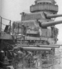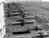 Lexington and Saratoga, notable for their huge size, were also notable for being the most powerful ships in the world. Their power plants were rated at 180,000shp but Lexington developed 209,000shp on her trials and Saratoga 210,000shp. (8) Turbine-electric machinery had been chosen for these ships “mainly because American marine engineering firms at that time were unable to produce reduction gearing of the requisite size and strength for the straight steam turbine power plants for ships requiring such power.”(9) Efficient and rugged, this equipment was heavy, intricate and not easy to maintain, but it was available and had proved itself in the colliers Jupiter and Jason – and Jupiter was now USS Langley. Sixteen oil-fired water-tube boilers drove steam turbines that drove electrical generators: they in turn sent electricity to drive motors attached to the propeller shafts. These shafts were relatively short (119’: 36.6m) and carried 3-bladed props 14’9” (4.5m) in diameter which pushed the slim hulls (fineness ratio of 8) up to 34kts.(10) As with all carriers, the problem of removing combustion gases had to be solved and in the case of the Lexington and Saratoga what was to have been seven (!) funnels when designed as battle cruisers became one huge funnel 104’(32m) long and 79’(24.3m) high, sited 38’ (11.8m) from the ship’s centerline.(picture 8,above) The island was forward of this funnel and sited 41’ from the centerline and all this weight had to be counterbalanced, a problem made even more acute by the placement of the four twin 8”gun turrets on the starboard flight deck, two ahead of the island and two aft of the funnel.(11) (picture 9). These ships required ballast to overcome the inherent list in their design.(12) On July 25, 1921 Captain Robert Stocker, Chief of Preliminary Design, ordered a study of the conversion of one of the battle cruisers into an aircraft carrier. Preliminary carrier designs had become ever larger during 1919-1920 until they were close to the size of the battle cruisers which had just been laid down: as a design exercise, Stocker’s order was timely.(13) Lexington (CC-1) had her keel laid Jan.8, 1921 and was 33% complete when the change to the carrier design was authorized; Saratoga (CC-3) had her keel laid Sept.25, 1920 and was 34.5% complete when taken in hand for conversion to a carrier.(14) When they emerged five years later, they were unlike any other warships on earth, their turbine-electric machinery being only one of their unique features. (picture 10)