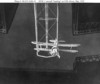 Macon was an almost identical sister-ship to Akron but it was somewhat lighter and so was able to handle all five of the Sparrowhawks it had been designed to carry. Her maiden voyage was in March,1933, just weeks before the Akron was lost. When Akron went down she had no fighters on board, thus her Sparrowhawks were transferred to Macon. (26) In October 1933, Macon arrived at her home base, the newly built hangar at Naval Air Station Sunnyvale, California. (Pictures 45 and 46) With the Los Angeles in storage, Macon was the only rigid airship operational in the USN. She had to justify her own existence before more funds would be forthcoming for future airships and everyone involved with her knew this. Thus the great stunt pulled by her Commanding Officer, Lt. Cdr. Wiley,(Picture 47: he is the officer at the right of the picture) who happened to be one of only three survivors from the Akron crash, must be seen as a politically necessary act. In fleet exercises off the coast of California in July, 1934, the Macon and her aircraft not only found the USS Houston, but one of her aircraft dropped a package of that day’s San Francisco daily newspapers on her deck. Everyone knew that the President of the United States, Franklin D. Roosevelt, former Assistant Secretary of the Navy and an acknowledged friend of the USN, was aboard the Houston. The President was amused and sent a “well-done” to Wiley and his crew but Wiley’s commanding officer was not amused. (27) Wiley had the idea of removing the Sparrowhawk’s wheels and storing them inside Macon to be re-installed when necessary. The lighter plane would now carry a 30 gallon (135l.)fuel tank under its belly to extend its range.(Picture 48) With the extra fuel, and newly-installed RDF (Radio Direction Finding) equipment (28), it was claimed that the Macon’s Sparrowhawks could scout a 200 mile (320km) path ahead and to the flanks of the airship.(Pictures 49-52) It appeared that the promise of the flying aircraft carrier was at last being met. (Picture 53)