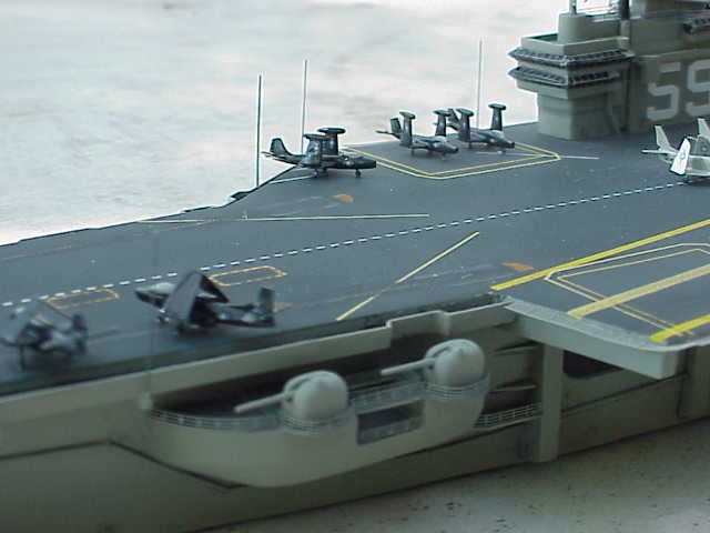 the blue used on WWII ships. I used Testors Dark Sea Blue for the flight deck,