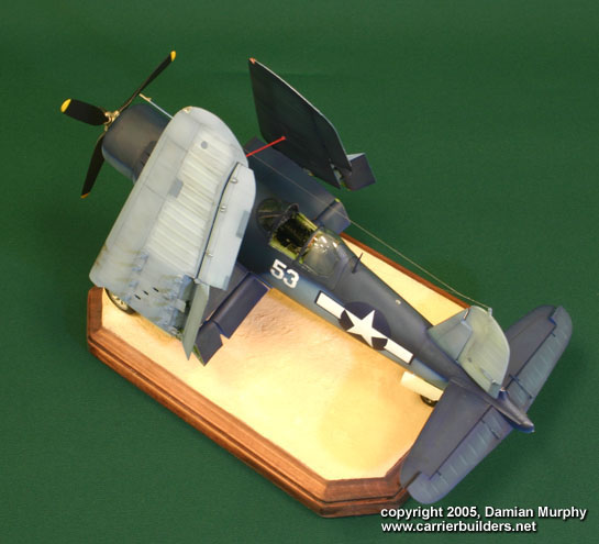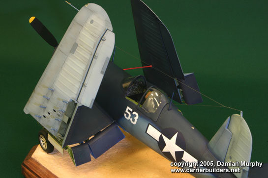 For this model it was finally nice to see another company tackle this replica in 1/32nd scale. The model itself is a nice version although the design of the cockpit could have been a bit more detail especially when you factor the high cost of the Trumpeter models. To this it is nice to see the after market companies such as Verlinden and Black Box turning out great resin detail kits for replacing the stock kit cockpit. I was a bit disappointed it the hinge points of this kit as it pertains to the flaps and I think the wing folds could be improved upon, the rest of the kit is rather nice. In constructing this kit I had to modify the cowling flaps as the kit supplied ones are at the wrong gap angle between the cowling flaps. All in all this is a very nice kit and even built