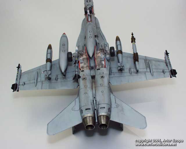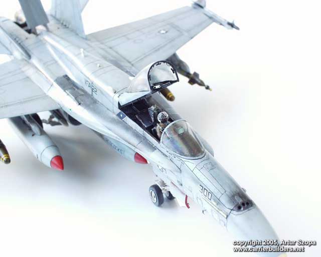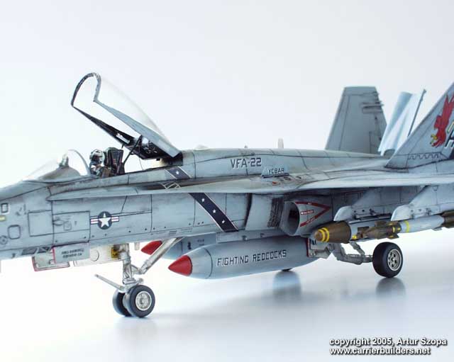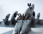 For this project I used Hasegawa set in 1:72 scale . Plastic form is old but with nice details and panel lines . Some of the elements I scratch build – cocpit , ejection seat and APU , rest I upgraded using Eduard Photo etched set. Decals option – TwoBobs set for VFA-22 Redcocks Squadron , Operation Enduring Freedom. For painting I used Gunze Paints , they are really amazing and much more accurate for FS colors. Wheatering done with pastel chocks and powders ( Windsor&Newton ) protect by Future clear ( in Poland Johnson&Johnson Floor Wax ) . So enjoy watching my BUG project.