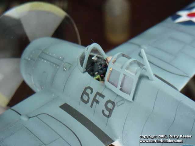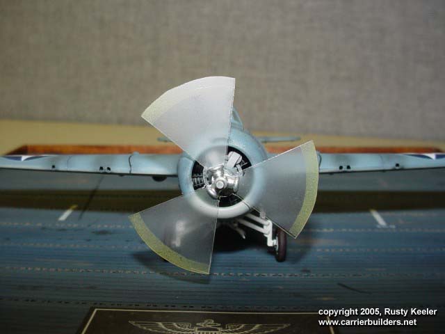 There were no decals used on this plane. The kit decals were for an Atlantic theater version and my son liked the paint scheme from the Pacific theater. I probably could have gone and found after market decals to use but I wanted to try my hand at painting all the markings. I drew up masks in AutoCAD for the numbers and the national insignia, cut them out and painted away. When I was done I noticed I had some slight miss-registration with the white from the star and the blue background but that was the only problem that really jumped out. I figured it gave it character and also showed that it had been hand painted so I left it alone. It was actually quite fun doing all the markings myself and found that it was something I enjoyed more then I thought I would.