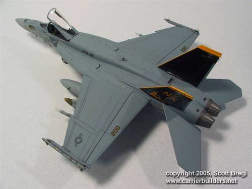 The incorrectly depicted intake depressions were filled in and then correctly depicted with home made decals. These were made by cutting a stencil in the correct shape then black paint was sprayed thru a photo-etch mesh to replicate the small bleed air holes. Note the landing