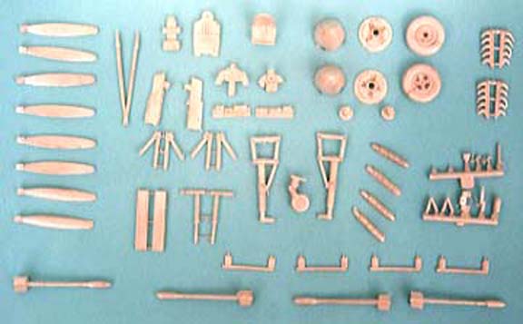 The kit comes as two vacuformed sheets with finely moulded main components plus a bag of white metal parts which include the undercarriage, props and spinners, cockpit details, radiators and rockets plus many other tiny pieces. Two canopies are supplied for those who make a mistake and a decal sheet covering two F20 machines and one F21, the instruction sheet seems pretty basic but all you need to know is there, of course you must be a fairly experienced modeller to have bought one of these kits as they are not for first timers