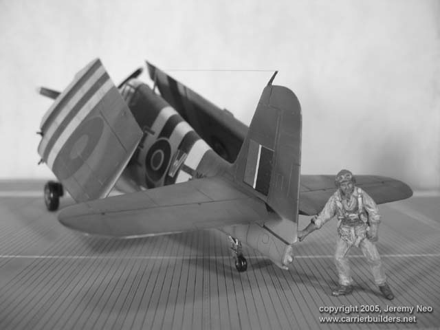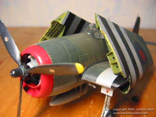 This is a rebox of Arii or Otaki kit, relatively cheap but still a good kit. Majority of the kit is built OOB except the wing was cut and modified to wing-folded position. FAA 800sqn saw action in the West against Battleship Tripitz and Far East.