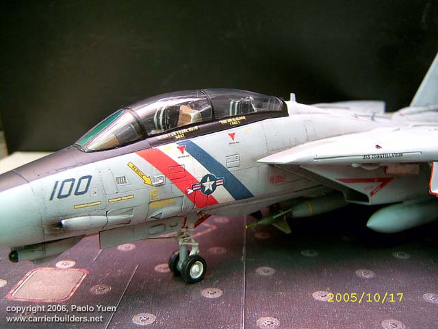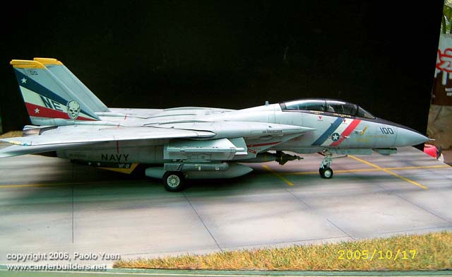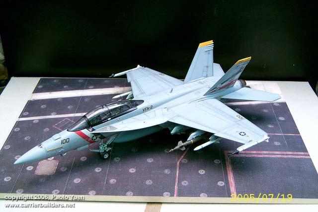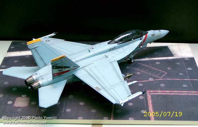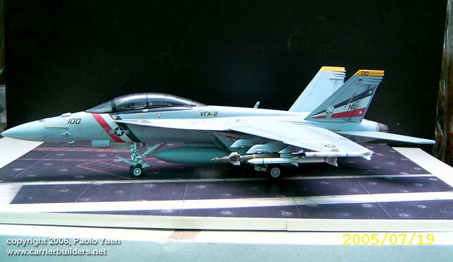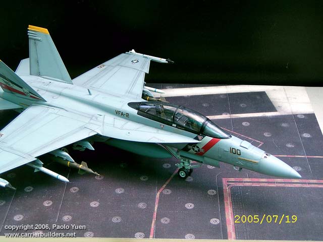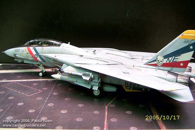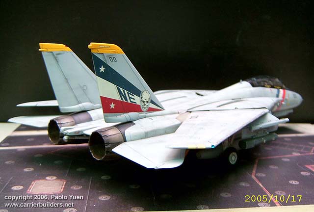 Both of the models I made is because I wanted to show the F-14 replaced to F/A-18F. Lucky I have both VF-2 decal to made. They both did not add any P.E. parts, resin cockpit and seats! All of them are building out of the box. The tomcat color I make it dirtier, I spray the color first, and the front fuselage the red, blue and white strip are hand paint. The national making is buying from another supply! Using the sepia color to weathering all panel, and pencil to highlight the rivets. The hornet is new released from Hasegawa. It quiet easy to build but the rivets is very deep! I spray the color on the model and sepia color to spray alone the rivets only! Then pencil highlight is enough for this new aircraft.