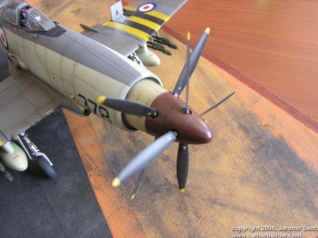 cockpit I put directly to fuselage without any improvements. After colours were dry, I sand model with very fine sandpaper and polish it with fine cloth – the rivets then up from colors. For weathering I use combination of pastels, artistic oils and spirit markers. Please see the Goffy Model Westland Wyvern Update set review here! Photos and text © 2006 by Jaromir Senft January 23, 2006 |