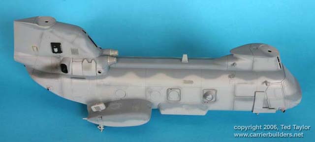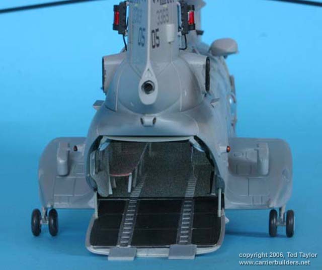 There are decals stripes for the rotors but these were so thin and weak I decided to paint the stripes on the blades so they can be seen, when all were dry the whole model was resprayed with Johnsons before I added a coat of flatting varnish, I have used a mix of 4 parts Klear and 1 part Tamiya flat base which was lightly dusted on to give a slight sheen Next day all the masking was removed and final touches were added plus items like lights painted by hand, the doors were removed and positioned as appropriate and the individual rear doors were set up to be in the lowered position.