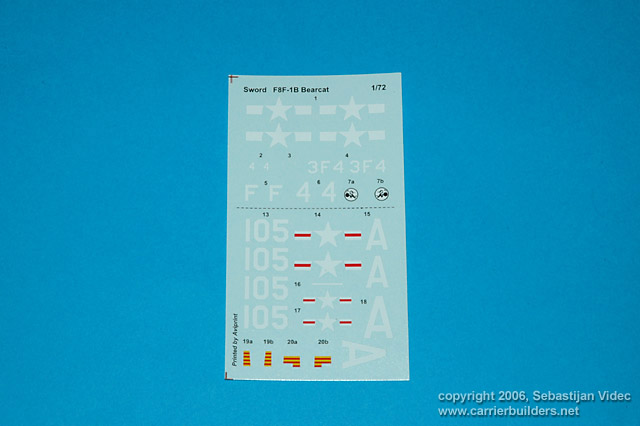 Finally a nice 1/72 Bearcat kit on the market which will satisfy experienced modelers and beginners as well. And don't be too surprised of the kit part #13 – the sword. I recommend this kit! Photos and text © 2006 by Sebastijan Videc July 22, 2006 |