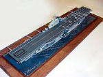 Having completed a Trumpeter 1/350th Hornet recently, I was thrilled to get my hands on one of these kits. Having read the reviews on the web, I was ready to go and bury myself in styrene and photoetched brass, and this kit doesn’t disappoint. Great detail, hundreds of parts, a correctly shaped hull, and super looking aircraft, this is a fantastic ship model. It depicts an early series Essex-class ship (but not Essex, as she never carried only one catapult).