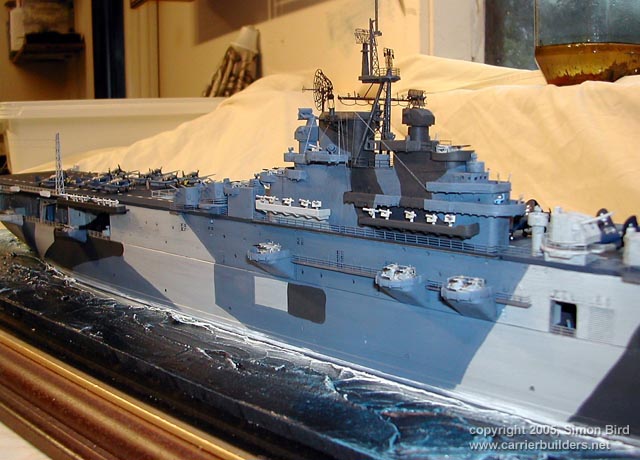 Detailed the kit with various GMM/WEM PE sets (I usually buy both for my ship projects to play it safe!). Also used were L'Arsenal 5" Single mount guns (Which are excellent to say the least). There is various things I'd like to improve on but I will just put these down to experience for my future projects.I have included about 6 Avengers but decided to place these in the hanger in favour of having Dauntlesses on deck (displaying dive brakes) Regards Simon (simon B)